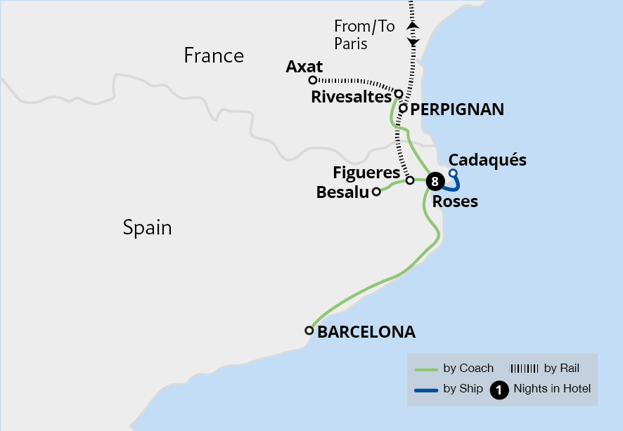 Based in the attractive coastal town of Roses, explore the rugged Costa Brava and experience the region's cultural and gastronomic highlights. Cruise around the picturesque Cap de Creus peninsula to the fishing village of Cadaqués, savouring local flavours with lunch at a vineyard. Explore Barcelona, which showcases the fantastic architecture of...