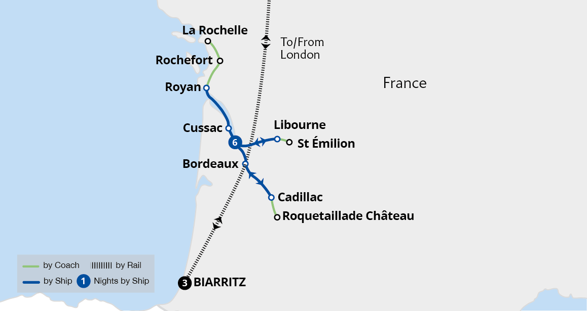 Experience the Basque coast of France and a river cruise into the wine region of Bordeaux. Starting in the Belle Époque city of Biarritz, we enjoy a trip on La Rhune Mountain Railway in the western Pyrenees. Next, we sail through the scenic Garonne and Dordogne aboard the MS Cyrano de Bergerac, into one of Europe's most renowned wine ...