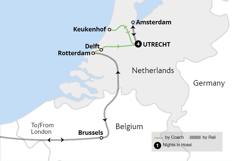 Experience the elaborate displays of Keukenhof Gardens, filled with dazzling spring blooms as the beautiful bulb fields come to life. This delightful short holiday to the Netherlands also provides the opportunity to explore some of the country's most charming cities. Brimming with culture and history, Delft is the birthplace of famed artist...