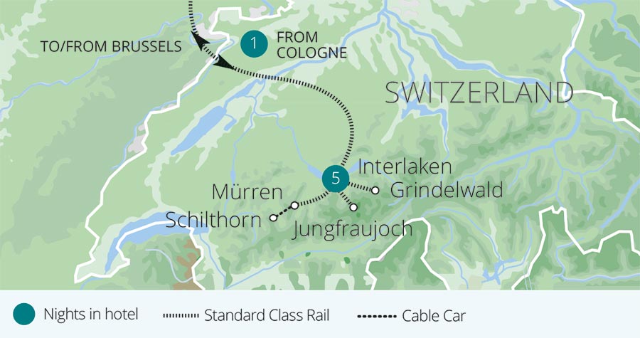 This idyllic winter holiday is based in the heart of the Bernese Oberland in picturesque Interlaken, one of Switzerland's popular resort towns, nestled between two lakes and overlooked by the snow-capped peaks of the mighty Eiger, Mönch and Jungfrau. Explore this stunning region on some of Europe's most celebrated railways, with spectacular trips...