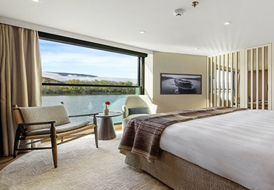 Located on the upper deck, these cabins enjoy the best views on board with a French Balcony allowing you to make the most of the passing landscapes. Each cabin includes an en-suite bathroom, personal climate control, flat-screen TVs, and complimentary Wi-Fi