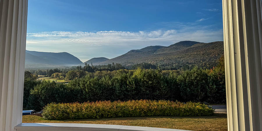 Just sat on the veranda early in the morning, watching the sun rise from behind the mountains was a pleasant way to start the day. Two musts in the area are the Mount Washington Cog Railway and the Conway Scenic Railroad.